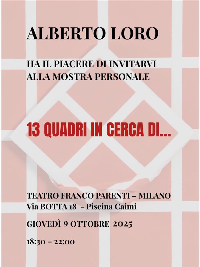 La mostra “Tredici quadri in cerca di…”, curata da Tommaso Venco, presenta tredici opere che affrontano con forza le urgenze del nostro tempo: guerre, fragilità sociali, diseguaglianze e crisi ambientali. Ogni opera è specchio e soglia, invitando lo spettatore a interrogarsi e riflettere. La poetica di Loro trasforma la geometria in emozione, i confini in possibilità, i limiti in punti di osservazione di un mondo complesso e frammentato.